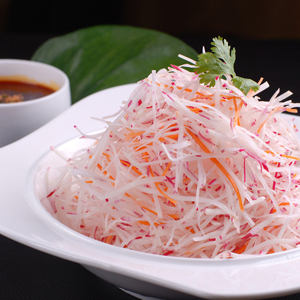 白萝卜生吃可以起到很好的生津清热、凉血止血、止咳化痰的作用。本身在白萝卜里面就含有丰富的VC和微量元素锌,能够增强人体的抵抗力。