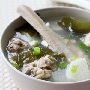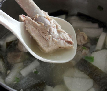 可见白萝卜海带排骨汤具有十分丰富的营养价值,并能够给人体带来很多好处。此汤在补充体力、提供营养方面有很好的效果,特别是还有保持大脑的功效,白萝卜海带排骨汤因汤中含有氮的浸出物,可以刺激胃液分泌,增加食欲的同时还可以补充体力,使精力更加充沛。特别是怀孕期间,身子较虚的孕妇,可对孕妇自身及胎儿都有很好的养护作用。但是白萝卜海带排骨汤也不适合长期饮用,因为海带含有大量的碘,可随血液循环进入胎儿和婴儿体内,引起甲状腺功能障碍。