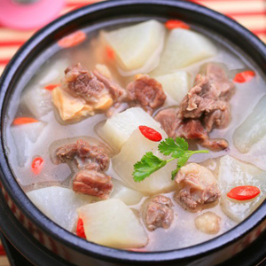 羊肉属于温性的食物,冬天吃羊肉可以抵御寒冷,还可以促进脾胃消化,还能抗衰老。搭配白萝卜一块吃,简直是起到了一热一寒的搭配作用,可以让羊肉减少燥热。