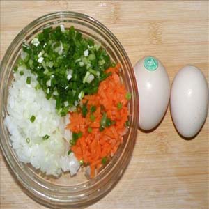 3、加入香葱不仅会让木耳胡萝卜炒鸡蛋变得好看,而且飘香四溢哦。