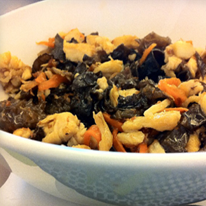 众所周知,木耳是延年益寿的好食材,常吃对人们的身体有莫大的好处。而搭配胡萝卜炒鸡蛋一同炒菜,使胡萝卜中的胡萝卜素容易吸收,也增加了菜肴中优质蛋白、多种脂肪酸、胆固醇的含量,增加了对人的滋补性,尤其适宜生长发育期小孩对蛋白质、脂肪、卵磷脂、胆固醇以及多种维生素的需要,也提高了不爱吃胡萝卜的孩子的兴趣,适宜青少年常吃。