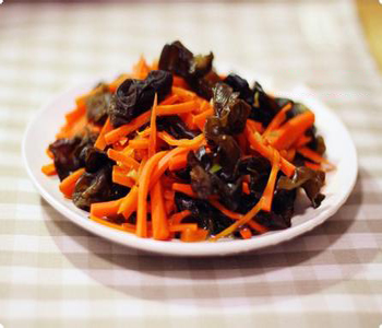胡萝卜富含糖类、脂肪、挥发油、胡萝卜素、维生素A、维生素B1、维生素B2、花青素、钙、铁等营养成分,是一种质脆味美、营养丰富的家常蔬菜,素有“小人参”之称。而木耳,雅称“清道夫”,具有丰富的食疗作用。