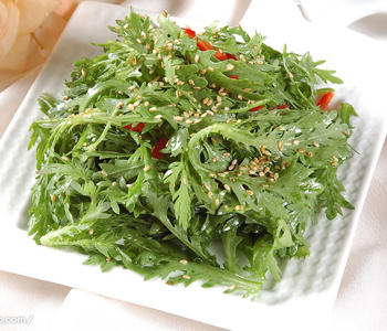 1、取洗净、切段的的茼蒿,放入沸水锅内焯烫,捞出过凉,加上精盐、米醋和香油等调匀食用.有健脾胃、助消化的功效.对于食欲不振者有良好的辅助治疗作用。