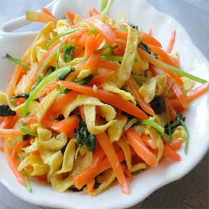 2、妈网网友coco:先将胡萝卜斜着切片,尽量切薄点,让后再将片斜着切成丝 现在超市商店都有种刮丝的工具,用那种工具就可以简单方便的将胡萝卜,土豆之类的切成漂亮的丝。