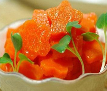 6、为避免胡萝卜素被酸性物质破坏,故烹饪时不宜放醋。若过量服食胡萝卜,往往引起皮肤黄染,不过不必紧张,停食两月,则会自行消退。