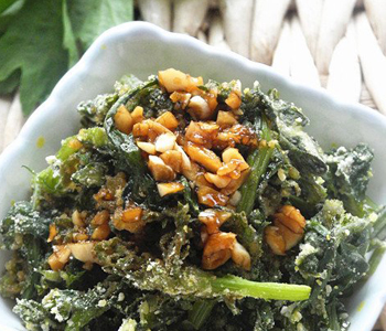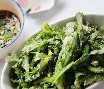 主料:茼蒿、面粉、蒜泥、蚝油、生抽、盐、香油