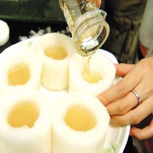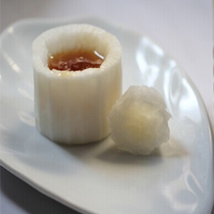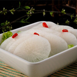 做法三:把白皮大萝卜洗干净后,挖空中心,加入适量蜂蜜,放入大碗内,加清水蒸煮20分钟,熟透即可食用。