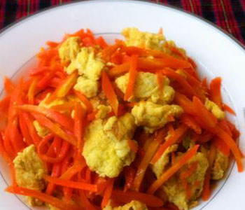 做法:先把胡萝卜和鸡蛋放在笼屉里蒸熟,取出后,分别切成小丁并混合在一起,即可喂宝贝。