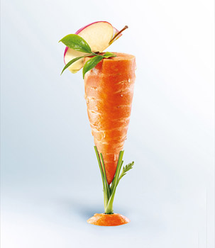 2 将胡萝卜捣成汁。将胡萝卜捣成汁当作茶饮,是一个不错的选择。不过尽量要鲜榨的,不少市面上有关胡萝卜汁的饮料都是添加了一些成分了,会影响胡萝卜中的养分。