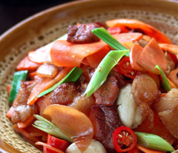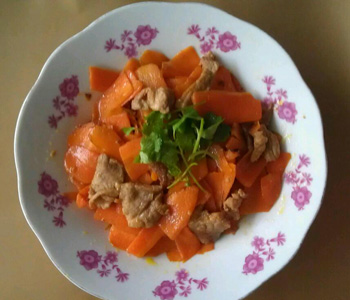 不过在介绍或萝卜炒肉的做法之前,我们先来了解一些关于胡萝卜的做法、技巧。胡萝卜素是脂溶性的,炒的时候适当多放些油,效果比较好。同时,胡萝卜外皮所含的维生素比里面多的多,吃时千万别把外皮去掉,以免造成不必要的营养损失,当然啦,彻底洗干净也就非常必要了。