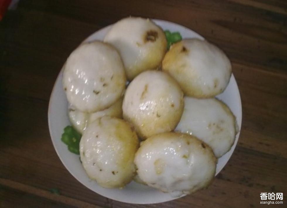把坯入铁锅内煎烤,入锅前先在烧热的锅内壁上涂层食用油,放好粑粑坯后,盖上锅盖,用中火煎烤至有轻微油烟气从锅盖边冒出,打开盖,均匀地洒些清水,加盖继续煎烤,如此反复二三次后,即可。