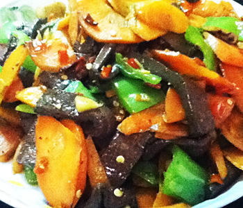 5、青蒜胡萝卜鸭血中的胡萝卜还含较多的钙、磷、铁等矿物质。不少专家研究证明,每天吃两根胡萝卜,可使血中胆固醇降低10%~20%;每天吃三根胡萝卜,对预防心脏疾病和肿瘤有奇效。