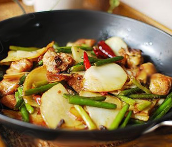 鸡肉片炒青椒土豆片是一道做法非常简单的家常菜,但是颜色搭配清爽,营养丰富,味道也很可口,所以是很受欢迎的一道菜品。