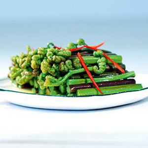 这样,一道清炒蕨菜就做好了,做法虽然简单,但是颜色鲜嫩欲滴,入口清新爽口,非常独特的一道小菜。
