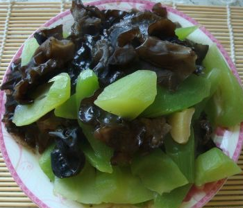 莴笋的营养价值和木耳的高营养价值,在一起会擦碰出怎样的火花了,爱吃莴笋与木耳的朋友们有口福了哦!称莴苣,菊科莴苣属莴苣种能形成肉质嫩茎的变种,一二年生草本植物。别名茎用莴苣、莴苣笋、青笋、莴菜。产期:1-4月。原产中国华中或华北。地上茎可供食用,茎皮白绿色,茎肉质脆嫩,幼嫩茎翠绿,成熟后转变白绿色。主要食用肉质嫩茎,可生食、凉拌、炒食、干制或腌渍,嫩叶也可食用。茎、叶中含莴苣素,内含莴苣素(C11H14O4或C22H36O7)。味苦,有镇痛的作用。莴笋的适应性强,可春秋两季或越冬栽培,以春季栽培为主,夏季收获。木耳味甘,性平,具有很多药用功效。能益气强身,有活血效能,并可防治缺铁性贫血等;可养血驻颜,令人肌肤红润,容光焕发,能够疏通肠胃,润滑肠道,同时对高血压患者也有一定帮助。