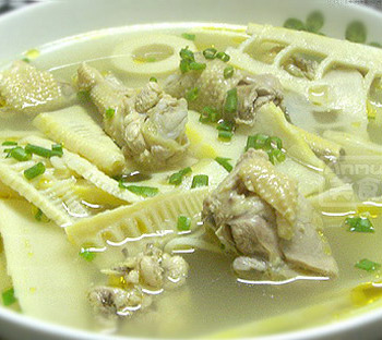 点评:鸡肉的浓香与竹笋的清香夹杂在一起,美味鲜香,更是一道极具滋补价值的营养品。