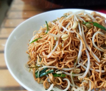 绿豆芽中含有丰富的蛋白质和多种氨基酸,面条则富有极高的热量。所以这道菜也很适合青少年食用,可在其生长发育、新陈代谢方面发挥良好的作用。