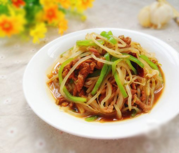 现在社会提倡食用天然健康的食物,绿豆芽是近年来被自然食用主义者推崇的一种食品,清脆爽口,做起来也方便,最重要的是它清热解毒,对身体健康非常有好处,也不会发胖。绿豆芽这样上好的清热解毒的蔬菜,加上富含动物蛋白和营养的肉丝,可谓荤素搭配、相得益彰。那么具体的过程应该怎么做呢?