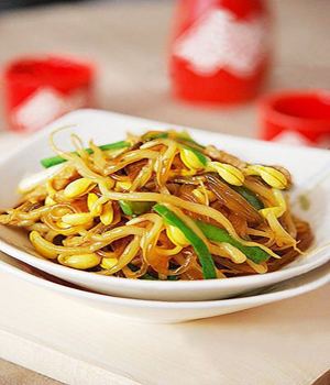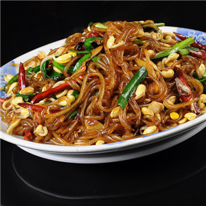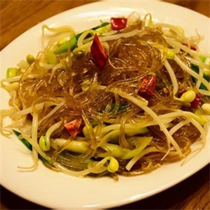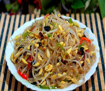 绿豆芽中含有丰富的蛋白质和多种氨基酸,粉条则富有极高的热量。所以这道菜也很适合青少年食用,可在其生长发育、新陈代谢方面发挥良好的作用。