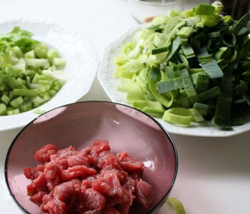 1、先将大葱切成斜片、香菜洗净后切成约3厘米上的短备用;