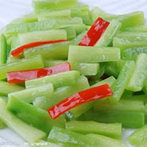 但是注意焯莴苣时一定要注意时间和温度,焯的时间过长、温度过高会使莴苣绵软,失去清脆口感;莴笋本身怕咸,所以盐要少放才好吃。