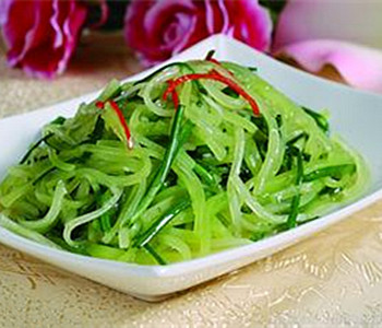 清炒莴笋丝:莴笋1棵,大葱1小段,大蒜2粒,油1匙,盐适量高汤1匙鸡精1小匙。首先,我们还是将莴笋削皮后切丝,大葱切成葱花,接着在锅里油烧热后下葱花爆香,然后倒入莴笋丝,翻炒片刻后放盐,再炒匀后依次淋上高汤、放入蒜泥。最后放鸡精快炒几下出锅,这道菜,便就算是完成了。
