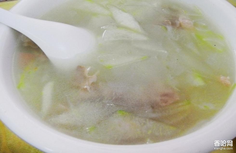 羊肉冬瓜汤是东北地区传统的汉族名菜,属于东北菜。这道汤色泽洁白,口味清馨,风味鲜美,是一道好汤。羊肉酥烂,冬瓜入口即化;羊肉味甘、性热,营养丰富,是冬季里滋补身体的佳品,而夏秋两季食用容易上火;冬瓜性寒,和羊肉结合成汤,羊肉温而不燥,冬瓜寒而不凉,这道汤达到了尽善尽美的境界。