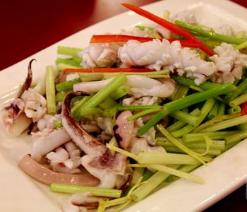 说到鱿鱼很多人都会想到街边的烧烤鱿鱼香味,让人馋得直流口水。其实除了烧烤外,鱿鱼还有很多种做法的,而且吃起来更卫生和营养。芹菜含蛋白质、碳水化合物、脂肪、维生素及矿物质等,其中钙、磷的含量较高。所含的挥发油香味浓郁,可增进食欲。用鱿鱼炒芹菜更是让人胃口大增。