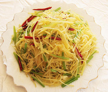 3、大火炒土豆丝。土豆含有一些有毒的生物碱,主要是茄碱和毛壳霉碱,但一般经过170℃的高温烹调,有毒物质就会分解。所以一定要煮熟透。而且要快速翻炒,不然土豆容易沾锅。炒至半熟时要先给土豆淋上酱油。