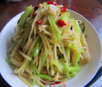 土豆,学名马铃薯。土豆外皮暗黄,内呈淡黄色,淀粉含量高,营养齐全,易被人体消化吸收,在欧洲享有“第二面包”的称号。土豆是低热能、多维生素和微量元素的食物,是理想的减肥食品。所有今天给大家推荐一道关于土豆的菜——土豆丝炒芹菜。做法简单又营养好吃,而且可以减肥、美容等等。