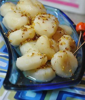 1、瘦肉加入腌料、荸荠末、葱末、蛋白调匀,即为馅。