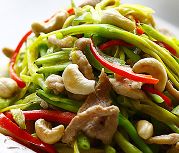 5、加盐翻炒后再放入腰果,最后炒熟即可。