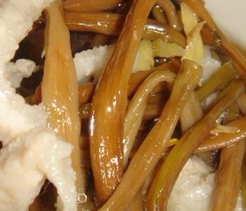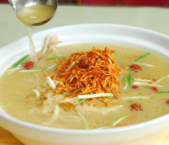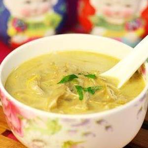 做法:首先要把黄花菜洗净在沸水中焯烫,再放到冷水中浸泡1到2个小时,挤干黄花菜中的水分。把香菇泡发后挤去其中的水分切成丝状,把猪瘦肉同样切成丝再用少许盐、料酒、淀粉拌匀上浆待用。在砂锅中放入1000毫升的清汤,然后用中火把汤煮沸,撒上少许盐,把猪肉丝倒到锅里面,等锅沸滚后,把油末撇去,再加入香菇丝煮沸滚3分钟后,最后加入黄花菜,淋上麻油即可出锅。