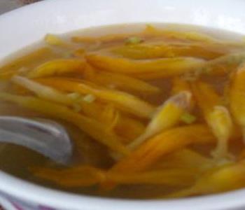 黄花菜,又叫金针菜、萱草等,是萱草上的花蕾部分。又因为黄花菜的花蕾和花蕊都带有柠檬色,所以外国人又称之为“柠檬萱草”。干的黄花菜营养十分丰富,而且具有多种保健功能,是一种花卉珍品蔬菜。黄花菜的吃法多种多样,可以凉拌,炒,做汤等。下面我们来看看黄花菜汤怎么做吧!