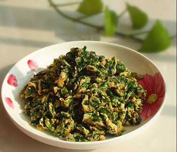 而鸡蛋则是几乎家家必备的食材。据分析,每百克鸡蛋含蛋白质14.7克,其中含有人体必需的8种氨基酸,并与人体蛋白的组成极为近似,所以人体对鸡蛋蛋白质的吸收率可高达98%的哦!而每百克鸡蛋含脂肪11~15克,主要集中在蛋黄里,也极易被人体消化吸收,蛋黄中含有丰富的卵磷脂、固醇类、蛋黄素以及钙、磷、铁、维生素A、维生素D及B族维生素。这些成分对人体都相当有益。所以说这道芹菜叶子炒鸡蛋可是一道不可多得的良菜哦!