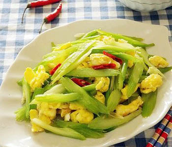 这里还可以给大家科普一下,芹菜炒鸡蛋的热量大约是在236大卡(200g分量)左右,属于较低热量,而芹菜还能帮助脂肪燃烧,而且对皮肤好,还等什么,动手试试吧!