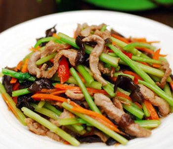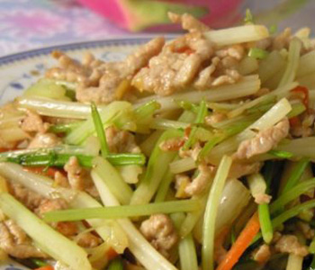 所以用芹菜炒肉丝时一定要多放些蒜头和生姜丝,可以达到中和芹菜和肉的凉性。