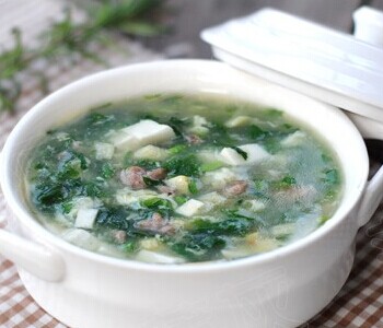 材料:荠菜500 克,猪肝200 克。精盐、味精、酱油、胡椒粉、湿淀粉、熟鸡油、肉汤。