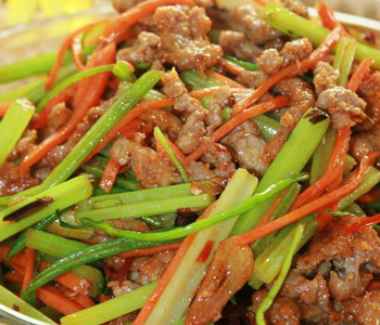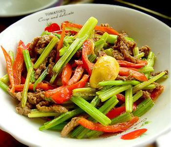 芹菜炒牛肉片不仅是味道鲜美,而且还包含有很丰富的营养,是一道非常适合一般人日常食用的家常菜。传统中医认为,牛肉有补中益气、滋养脾胃、强健筋骨、化痰息风、止渴止涎的功效。牛肉含有的蛋白质很丰富,和猪肉相比,它的氨基酸组成更接近人体需要,常吃牛肉能提高机体抗病能力,对生长发育及手术后、病后调养的人在补充失血、修复组织等方面特别适宜。此外,牛肉是寒冬补益佳品。在寒冷的冬天吃牛肉,有暖胃御寒的作用。中气下陷、气短体虚,筋骨酸软、贫血久病及面黄目眩的人应该多吃牛肉补益身体。