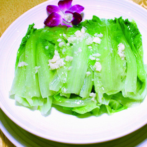 蒜蓉生菜:除了具有清炒生菜的功效外,还有杀菌、消炎和降血糖的作用,甚至还可以补脑。生菜含有丰富的维生素,具有防止牙龈出血以及维生素C缺乏等功效。大蒜有解毒、行滞、健胃的功效,对脘腹冷痛、痢疾、泄泻、肺痨、百日咳、感冒、疟疾等症有一定的食疗作用。