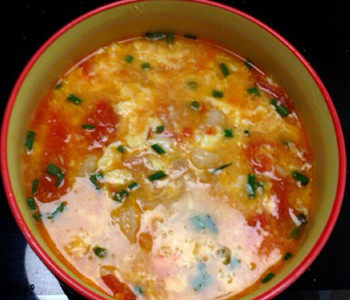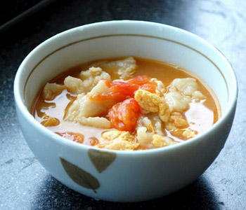 9、食欲不振或经常有应酬喝酒的人比较适合喝西红柿鸡蛋疙瘩汤。