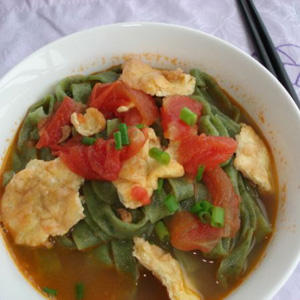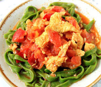 这样,西红柿菠菜面就做好了。这是一道主食,口感爽滑,容易消化,非常适合肠胃不好的人食用,长期吃的话可以达到养胃的效果。而且面的颜色搭配也十分鲜艳,对于不爱吃饭的宝宝来说可以激起他们进食的兴趣。配菜可以根据季节和喜好的不同进行调配,营养丰富。