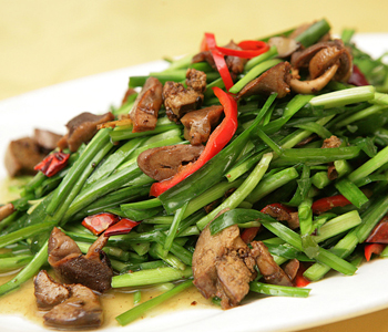 调料:韭菜(适量)精盐(适量)植物油(适量)生姜(适量)干红椒(适量)
