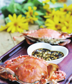 6、蒸梭子蟹蒸十五分钟左右,出锅后,搭配蘸料一起食用。