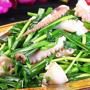 新鲜鱿鱼中蛋白质含量高达16%~20%,脂肪含量极低,仅为一般肉类的4%左右,因此热量要远远低于肉类食品,对于怕胖的人来说,吃鱿鱼是一种很好的选择。而且韭菜可以促进肠蠕动,从而排除肠道中过多的脂肪,也是非常理想的减肥食物。