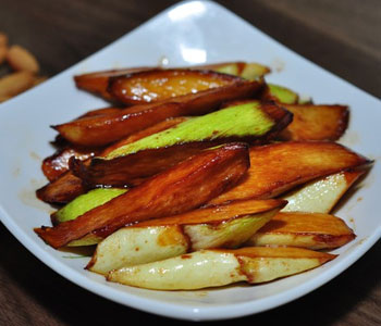 材料:茭白、生抽、老抽、糖、盐、麻油