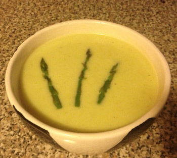 点评:好喝又好看,芦笋与土豆的清香,夹杂着培根的美味,令人垂涎。