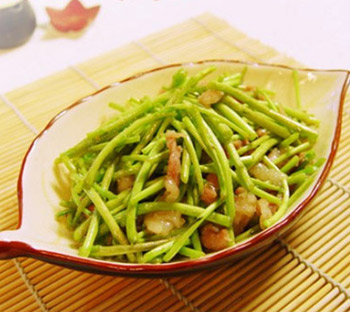 做法:1 瘦肉洗净切丝,芦笋洗净切段,姜洗净切丝。