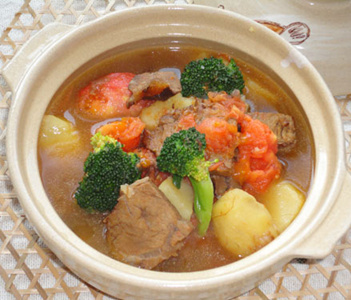 2、冷锅凉油加热到适合温度,然后调到适合的火候。放入土豆翻炒均匀,放入牛肉翻炒一会儿。
