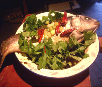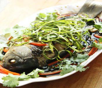 秘诀七:关火后,别打开锅盖,鱼不取出锅,利用锅内余温“虚蒸”8分钟后立即出锅,再将预先备好的调料(酱油、醋、清油)淋遍鱼身(不能放盐、味精,以求清淡、鲜嫩),再随意摆上几根香菜后上桌开吃。